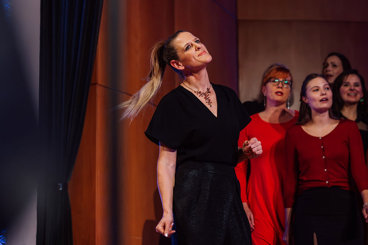 Sandra Feketija je zborovodkinja, pevka in pedagoginja, ki s svojimi dolgoletnimi izkušnjami usmerja tok glasbe in ustvarja prostor, kjer lahko glasovi njenih članic zasijejo.